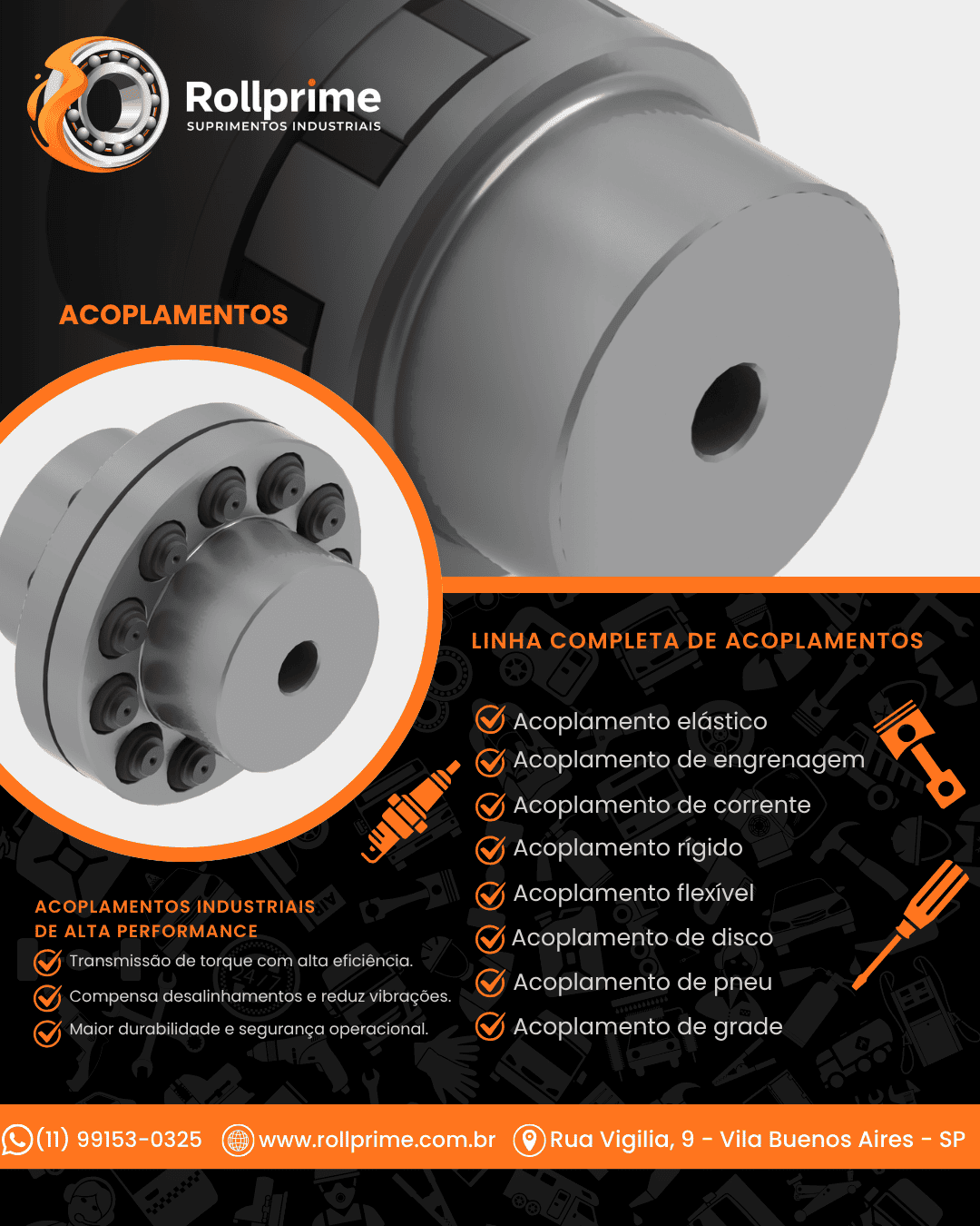 Oferecemos uma linha completa de acoplamentos industriais desenvolvidos para garantir transmissão de torque com segurança e eficiência. Fabricados com materiais de alta resistência, os acoplamentos absorvem vibrações, compensam desalinhamentos e aumentam a vida útil dos equipamentos