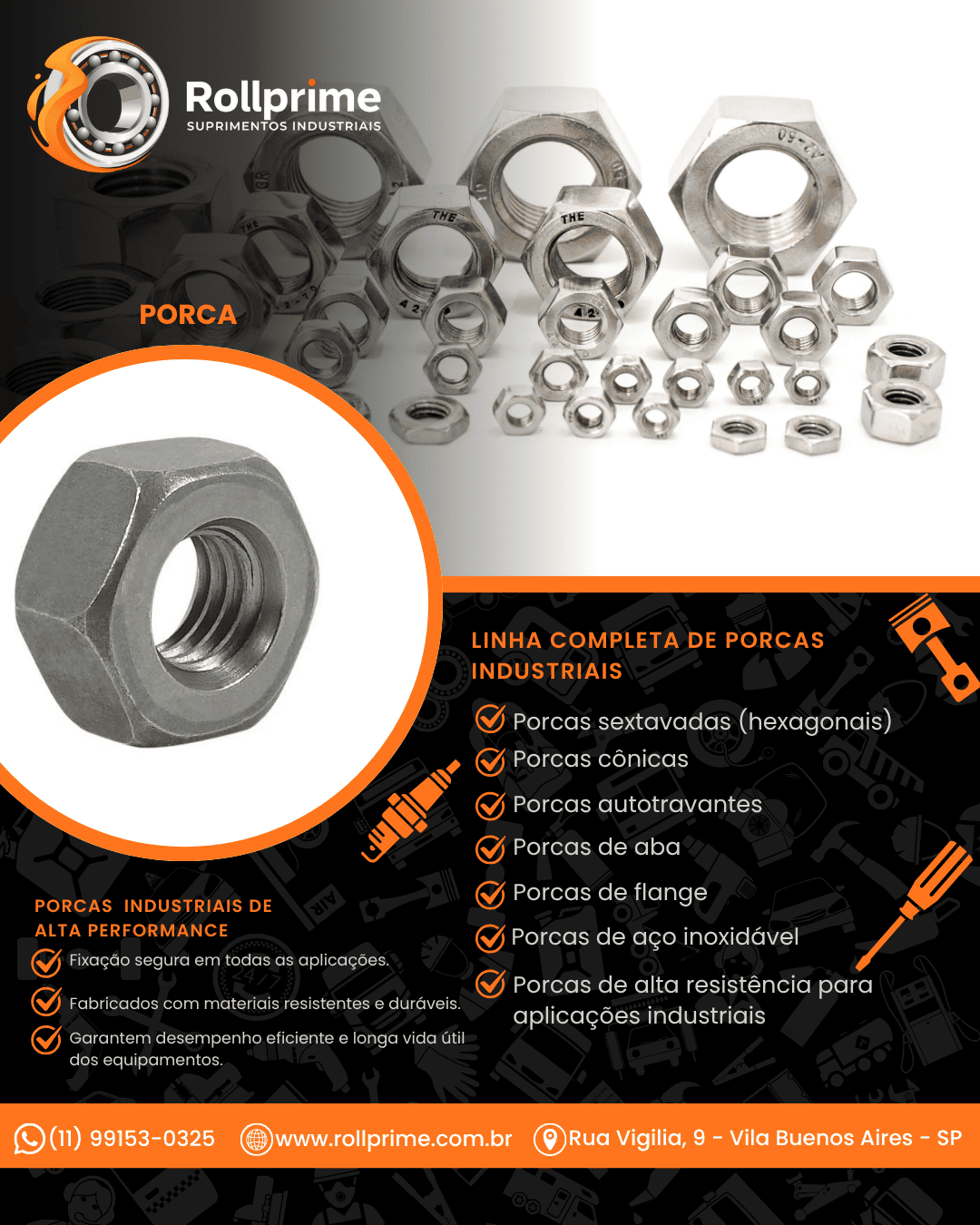 as porcas auto-travantes (nylon insert) garantem fixação firme e segura, mesmo sob vibração e movimento intenso. o anel de nylon interno impede o afrouxamento.